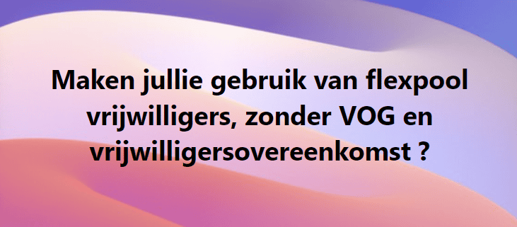 De hele vraag luidde als volgt: ‘maken jullie gebruik van flexpool vrijwilligers, zonder VOG en overeenkomst?’