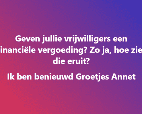 Vraag: geven jullie vrijwilligers een financiële vergoeding? Zo ja, wat?