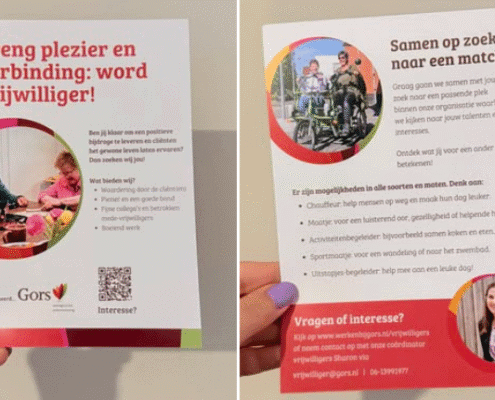 Vrijwilligerscoördinator Sharon van GORS uit Goes laat zien dat je simpel een actie kunt opzetten om nieuwe vrijwilligers te werven. Een flyer gecombineerd met online: