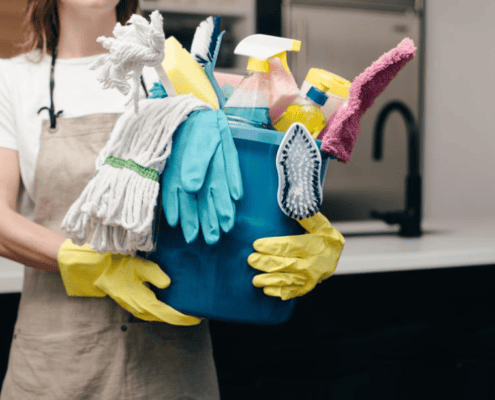 Gewapend met vuilniszakken, handschoenen, bezems en kratten…