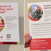 Vrijwilligerscoördinator Sharon van GORS uit Goes laat zien dat je simpel een actie kunt opzetten om nieuwe vrijwilligers te werven. Een flyer gecombineerd met online: